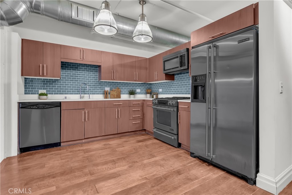 Nestled in the heart of the vibrant Arts District of Downtown Los Angeles, Barker Block offers a seamless blend of modern luxury and industrial charm. This 2,660-square-foot loft is designed for both style and functionality, featuring two beautifully updated bathrooms, a sleek kitchen with stainless steel appliances, hardwood floors throughout both levels, an in-unit washer and dryer, central heating, and custom-built cabinets for additional storage. Residents of Barker Block enjoy exclusive access to resort-style amenities, including a stunning rooftop deck with a pool, spa, fire pits, cabanas, BBQ grills, and a cutting-edge fitness center. Additional perks include two assigned parking spaces, onsite HOA management, and 24/7 security for peace of mind. Perfectly positioned in the heart of the Arts District, this home is surrounded by some of the city's most renowned eateries, coffee shops, and galleries, including Urth Caffe, Bavel, Bestia, and Girl & the Goat. Conveniently located across the street from a dog park, metro, and train station, and with easy access to all major freeways, this location truly has it all.